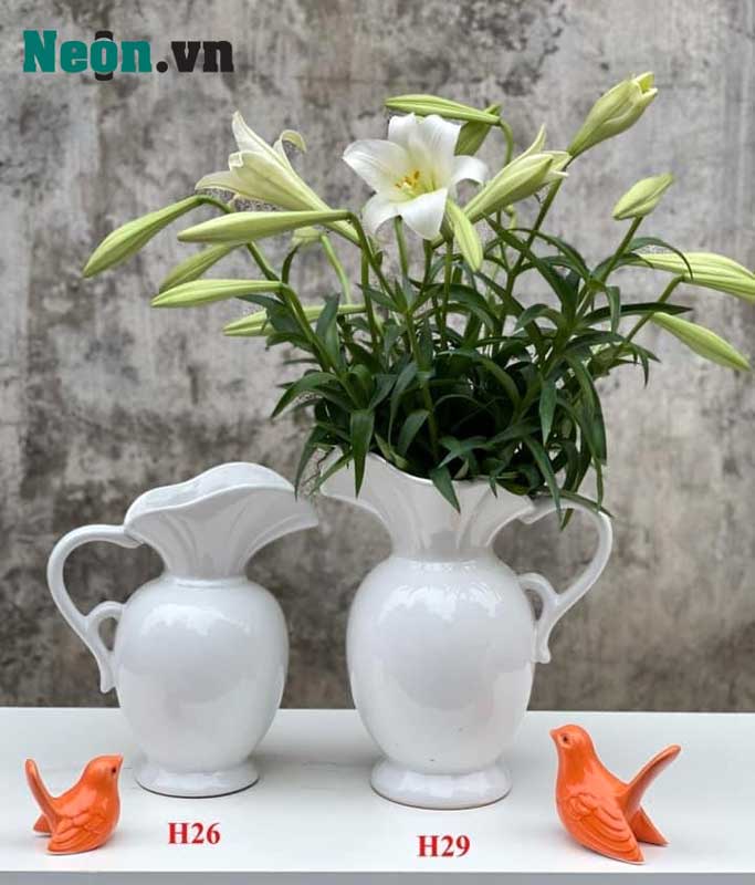 Lọ hoa đẹp chính hiệu Bát Tràng, dáng bình sữa miệng lá trắng khử 100%, sản phẩm có 2 kích thước lựa chọn cao 26/29 cm.